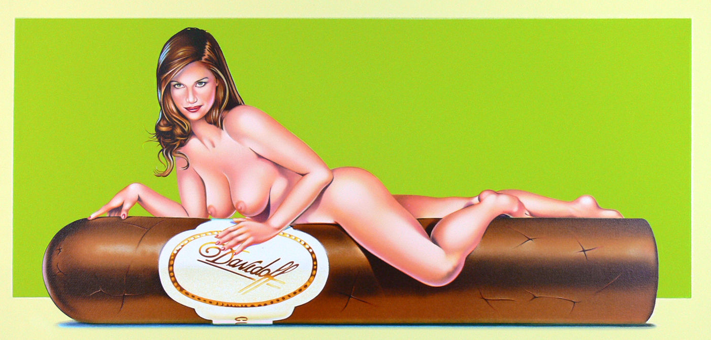 Mel Ramos wurde 1935 in Sacramento geboren, in einer portugiesisch-azoreanischen Einwandererfamilie. Er war ein figurativer Maler, der sich auf die Produktion von weiblichen Aktfotos spezialisiert hat. Obwohl sein Werk deutlich figurativ ist, beinhaltet es auch verschiedene Elemente der abstrakten Kunst. Mel Ramos begann während der Expansion der Pop Art-Bewegung in den 1960er Jahren an Popularität zu gewinnen. Damals schuf er hauptsächlich Bilder von beliebten Superhelden und begann allmählich weibliche Akte von bizarren Objekten wie Maisstengeln, Bananen, Bonbonverpackungen, Martini-Gläsern oder berühmten Zigarren- und Zigarettenmarken wie Havanna zu integrieren. In Stücken wie Butterfinger von 1995 und Miss Lucky Lulu von 1965 kombiniert Ramos jugendliche, ironisch perfekte Frauenkörper mit amerikanischen Schokoriegeln, Zigaretten und anderen Markenartikeln.