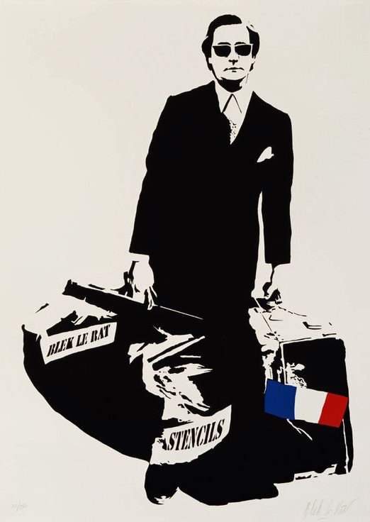 Blek le Rat was born as Xavier Prou in Paris in France (1951). A pioneer of graffiti writers in Europe. He was one of the first to use stencils for creating icons instead of writing his name. He was first exposed to graffiti in 1971, in New York, but didn’t start making his own until ten years later, in Paris. Inspired by a stenciled portrait of Mussolini he created a silhouette of a rat running along the streets, which quickly became recognized around Paris. Blek’s work has been exhibited in galleries around the world and featured in publications such as TIME Magazine, The New York Times and The Los Angeles Times. In 2008, his first monograph, Blek le Rat – Getting Through Walls, was published by Thames + Hudson. In 2011, Art Publishing, Ltd. released Blek le Rat: 30 Year Anniversary Retrospective.