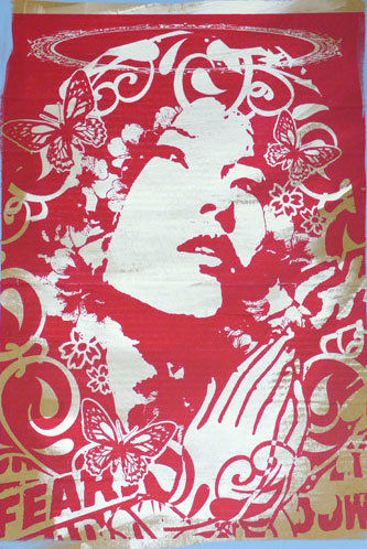 When his source of free supplies finally dried up, he turned to the streets as a new free canvas. It was in this very public area that his work began to attract attention, and it wasn’t long before he was exhibited for the first time in a gallery. Many years later, without any formal art education or qualification, he experimented and constantly pushed his work forward. He mixed new materials and techniques with his characteristic style and the resulting paintings were as fine arts as street art. Copyright – Shadow of Fear