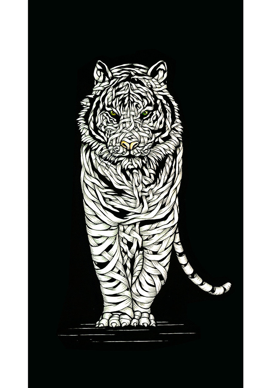Otto Schade’s paintings consist of two main types: those based in the surreal and those that are abstract in nature. When painting, his preferred mediums are canvas, paper, boards, and walls. He has also experimented with collages and graffiti, which are so impeccably clean, detailed, and well-defined due to his intricate use of coloring, shading, and line work. It is this complex use of lines that brings to life the specific image being depicted in his work, whether it be a simple figure to more iconic images such as Andy Warhol’s Campbell’s soup can. Otto Schade utilizes both bright and darker color palettes to highlight his image, delving into more personal and metaphorical figures while incorporating sharp, ironic touches throughout.