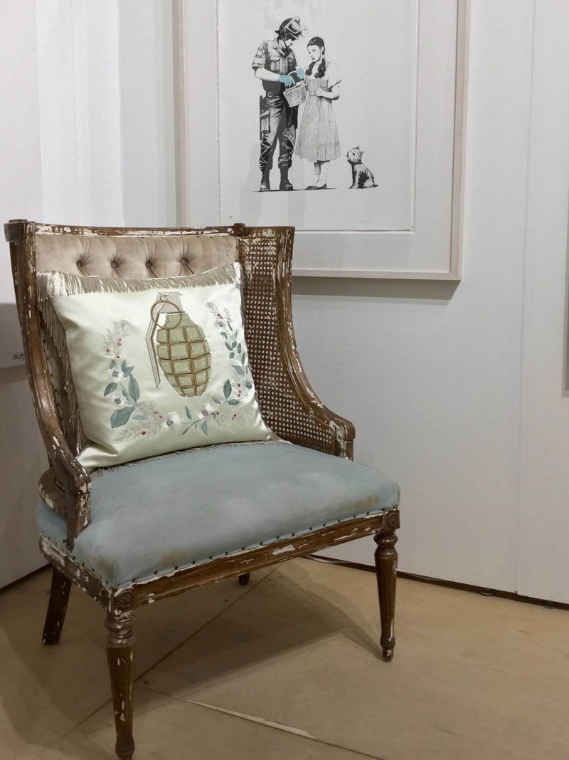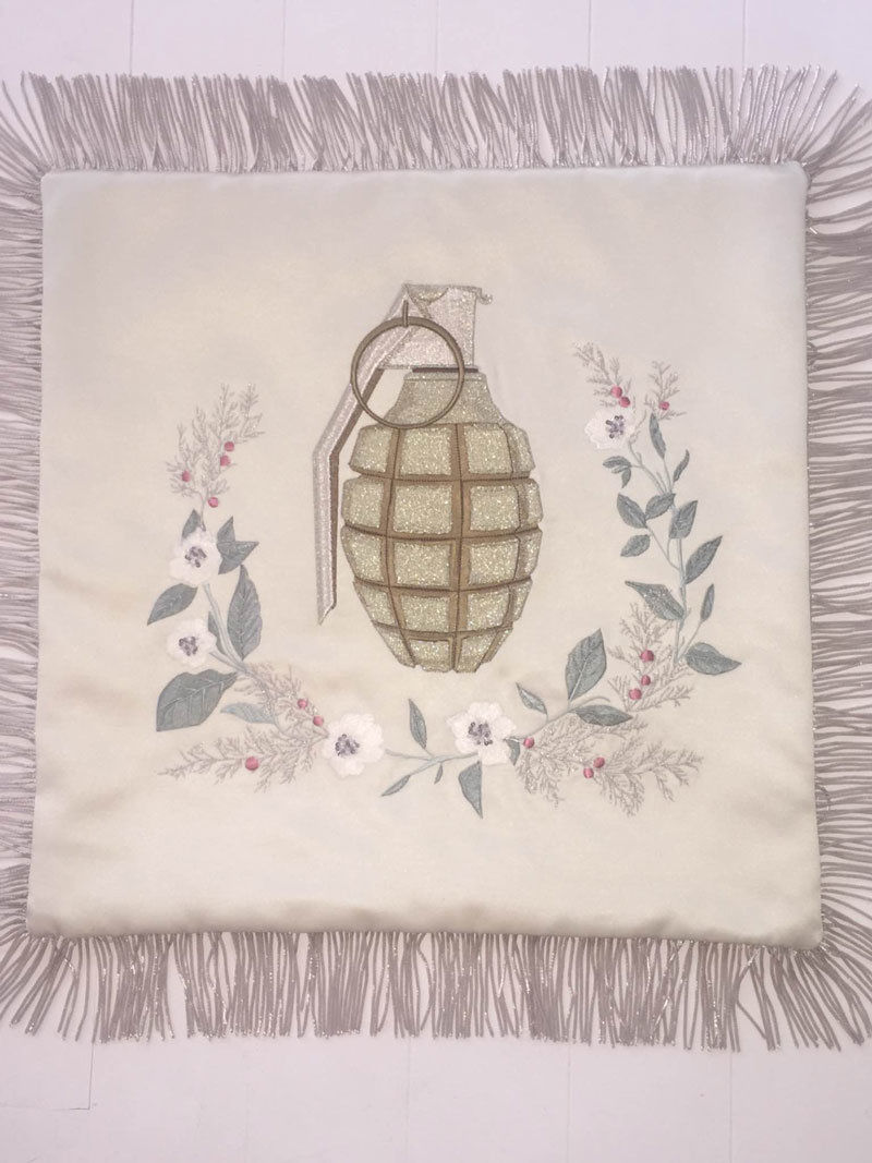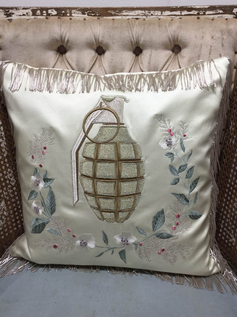 Exclusiv Pillow from Sylwia von Walls: Love Grenade Creme. Unique 1/1. Perfect Fabrics. Perfekt Design. You can get it only at Ministry of Walls. All pillows are handcrafted, unique and selectet. Sylwia von Walls is the specialist of home furniture Design.